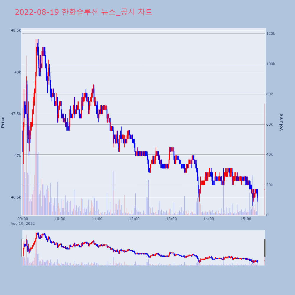 | 2 | [장중수급포착] 한화솔루션, 외국인/기관 동시 순매수… 주가 +2.47% [서울=뉴스핌] 로보뉴스 = 18일 10시 15분 현재 | 뉴스핌 | 한화솔루션 | 2022-08-18 10:17:32 |