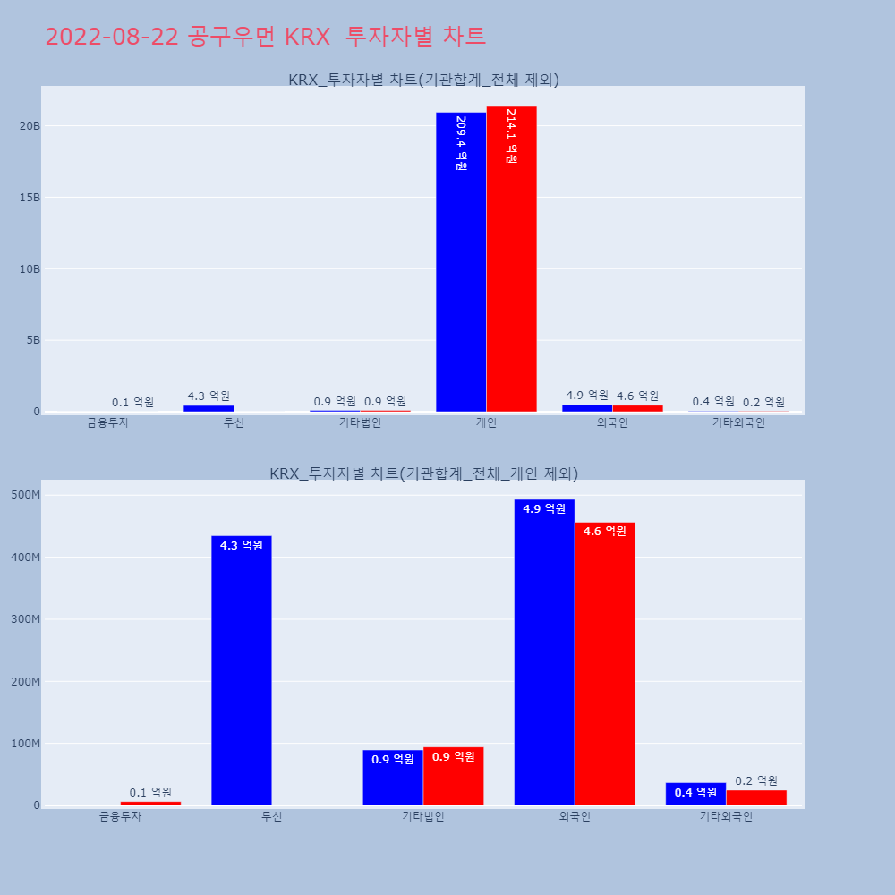| 투자기관 | 거래량_매도 | 거래량_매수 | 거래량_순매수 | 거래대금_매도 | 거래대금_매수 | 거래대금_순매수 |