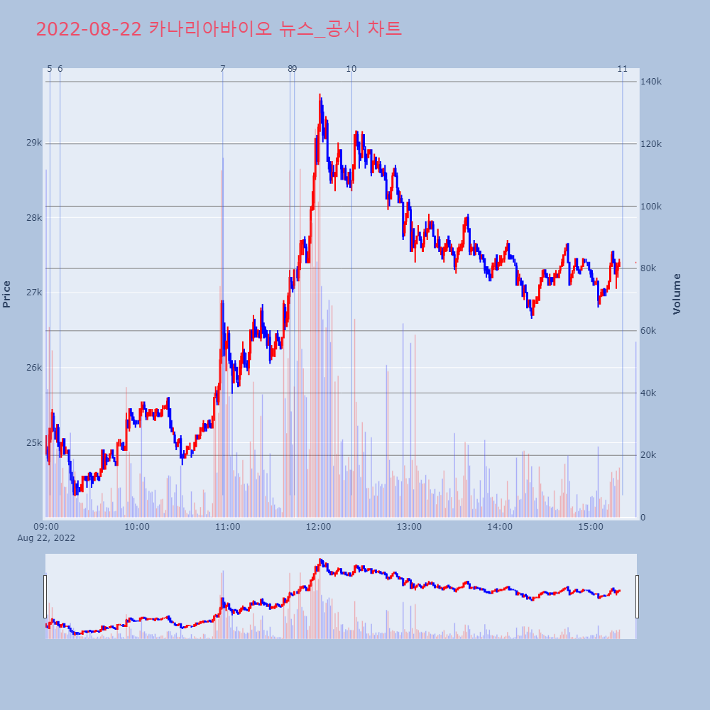| 9 | 카나리아바이오, +12.81% VI 발동카나리아바이오가 VI가 발동했다. 전일 대비 12.81 | 조선경제 | 카나리아바이오 | 2022-08-22 11:44:11 |