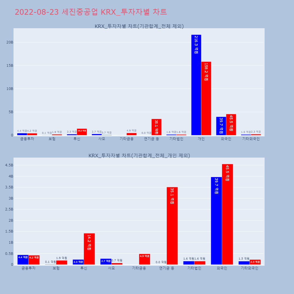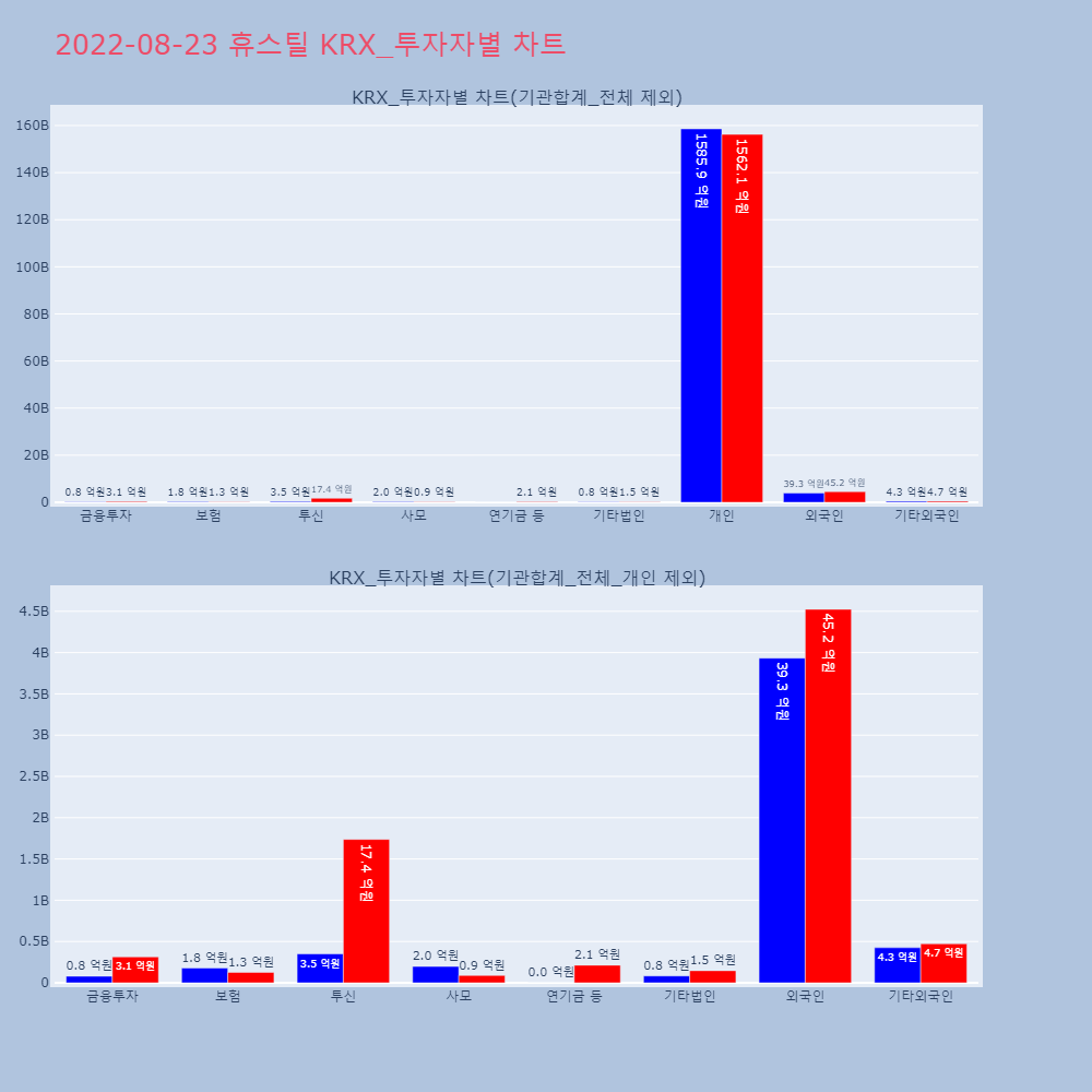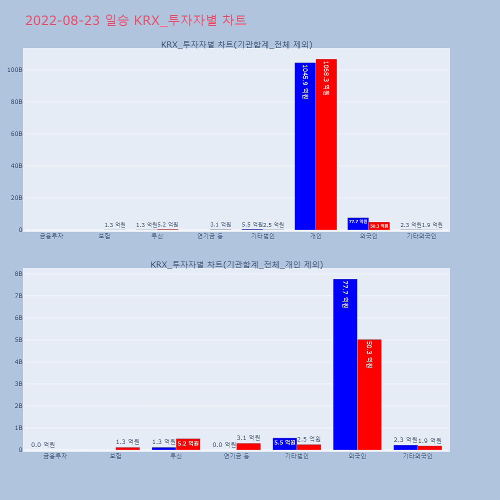 | 개인 | 113,483 | 85,061 | -28,422 | 21,669,244,500 | 16,231,513,000 | -5,437,731,500 |