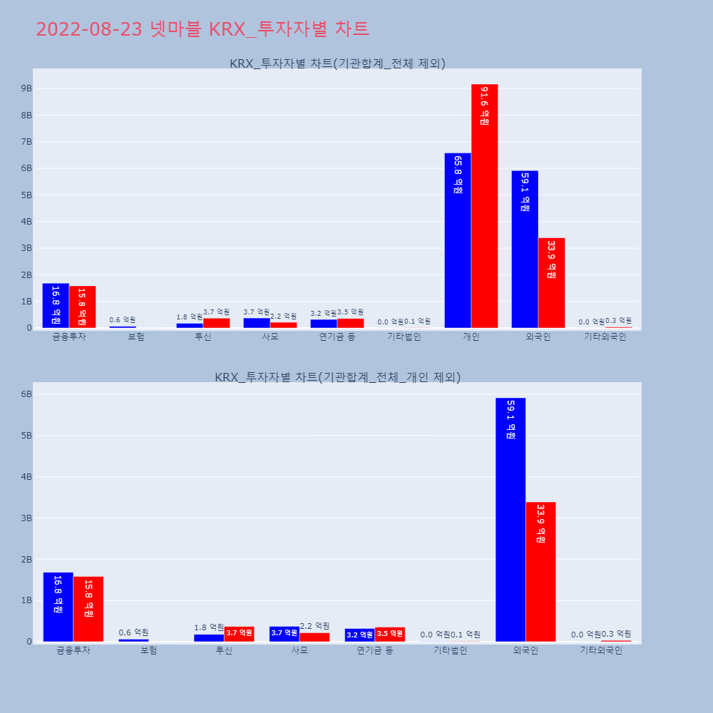 | 개인 | 141,502 | 109,611 | -31,891 | 7,607,931,100 | 5,889,702,000 | -1,718,229,100 |