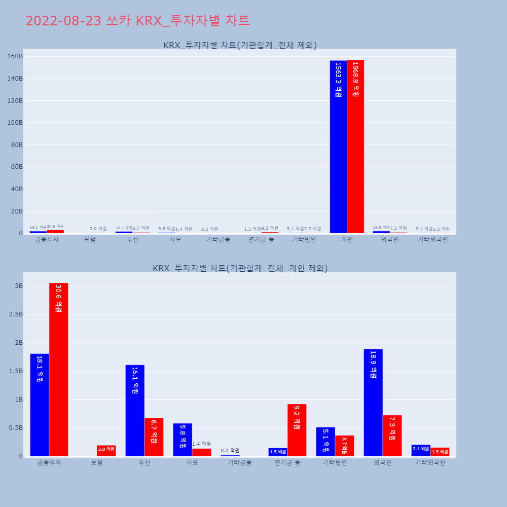 | 투자기관 | 거래량_매도 | 거래량_매수 | 거래량_순매수 | 거래대금_매도 | 거래대금_매수 | 거래대금_순매수 |