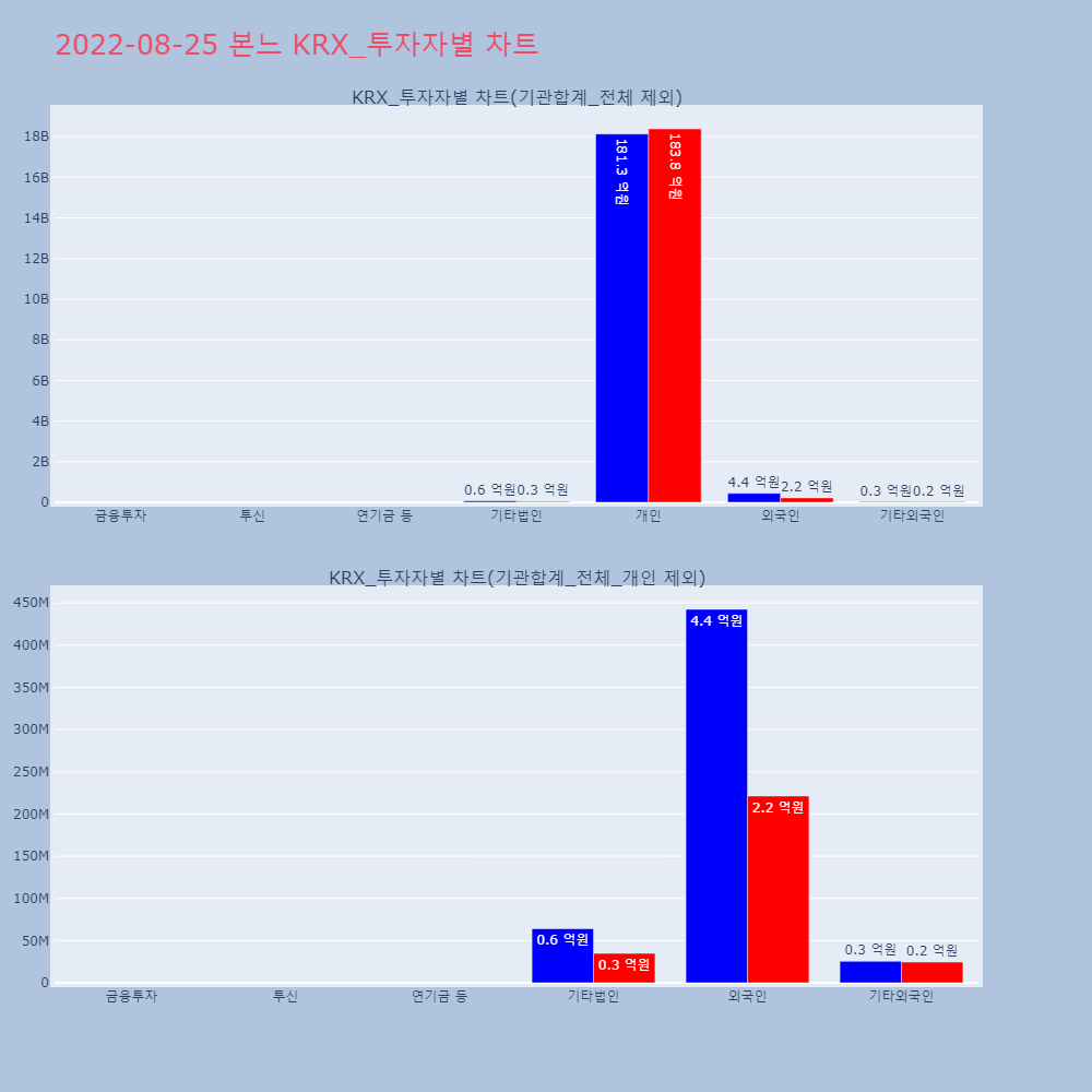 | 투자기관 | 거래량_매도 | 거래량_매수 | 거래량_순매수 | 거래대금_매도 | 거래대금_매수 | 거래대금_순매수 |