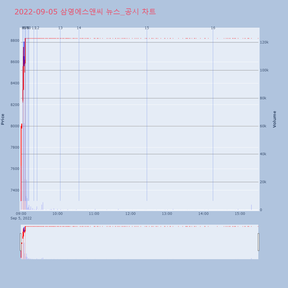 8 | 삼영에스앤씨, 자동차 배터리팩 관련 국책과제 선정에 급등삼영에스앤씨가 자동차 배터리팩 관련 국책과제에 최종 | 한경/증권 | 삼영에스앤씨 | 2022-09-05 09:10:44 |