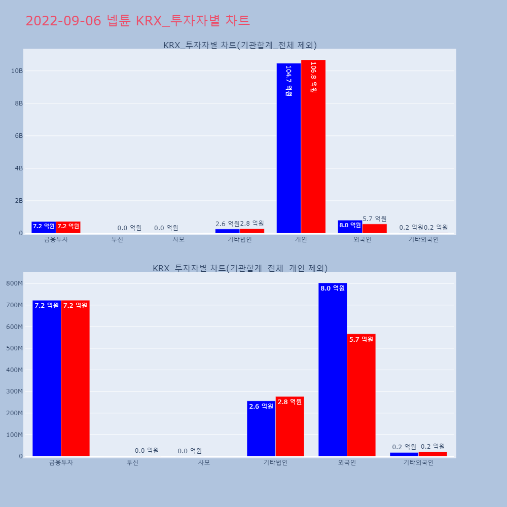 | 투자기관 | 거래량_매도 | 거래량_매수 | 거래량_순매수 | 거래대금_매도 | 거래대금_매수 | 거래대금_순매수 |