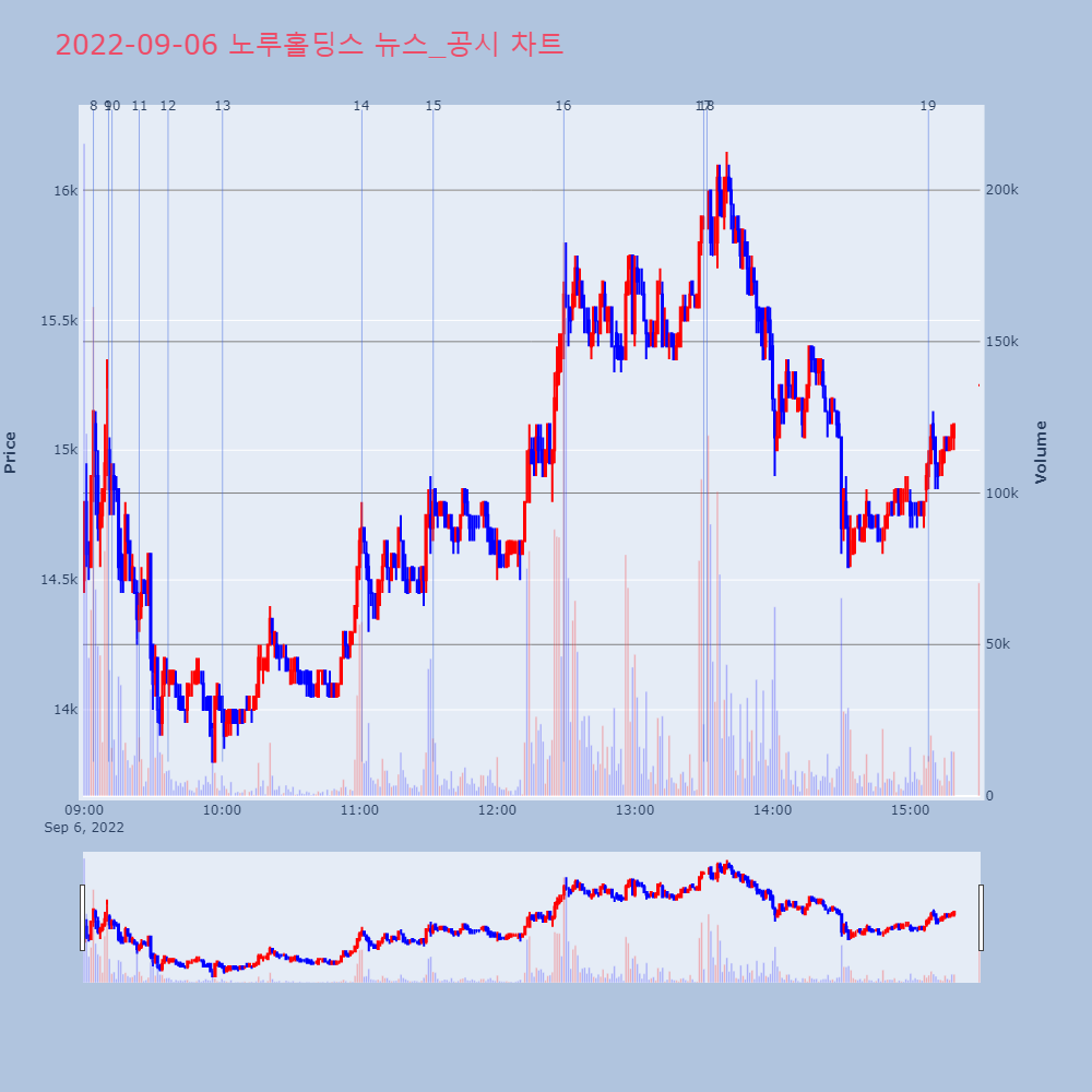 | 17 | 노루홀딩스, +18.22% VI 발동노루홀딩스가 VI가 발동했다. 전일 대비 18.22% | 조선경제 | 노루홀딩스 | 2022-09-06 13:30:02 |