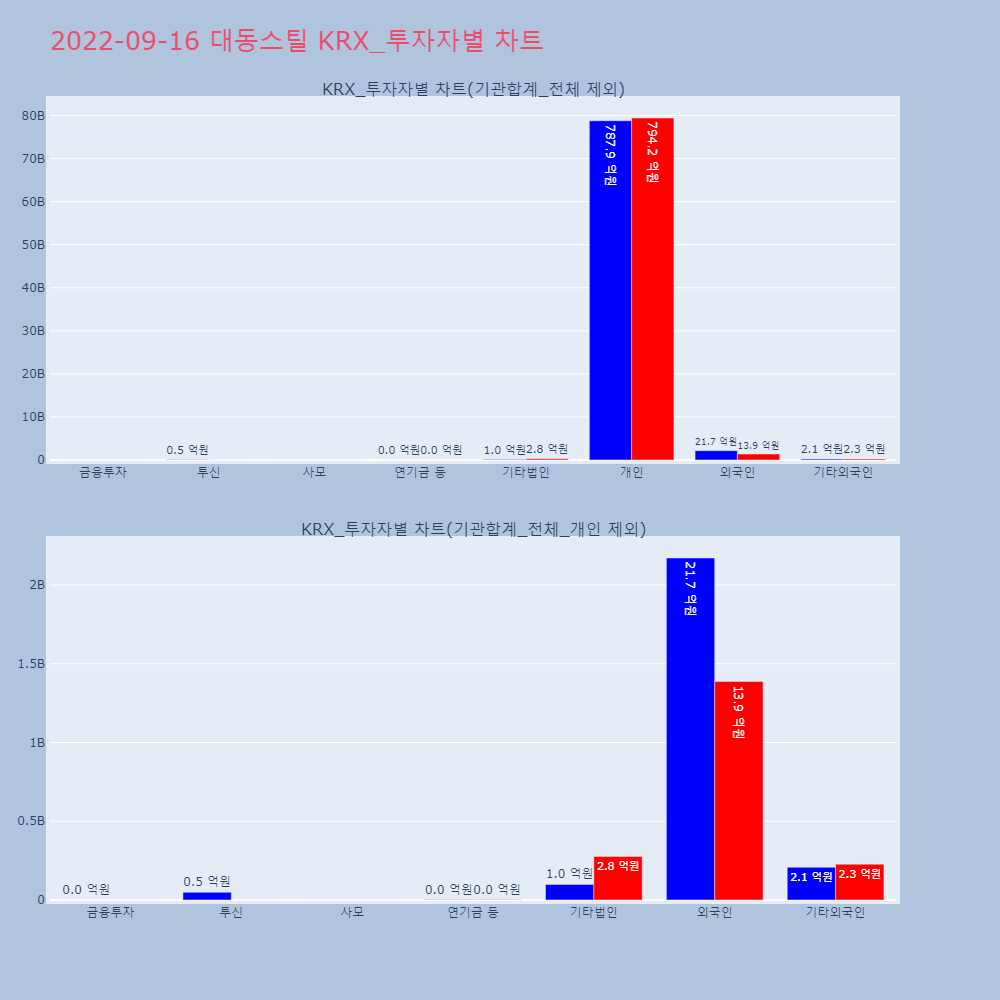 | 투자기관 | 거래량_매도 | 거래량_매수 | 거래량_순매수 | 거래대금_매도 | 거래대금_매수 | 거래대금_순매수 |