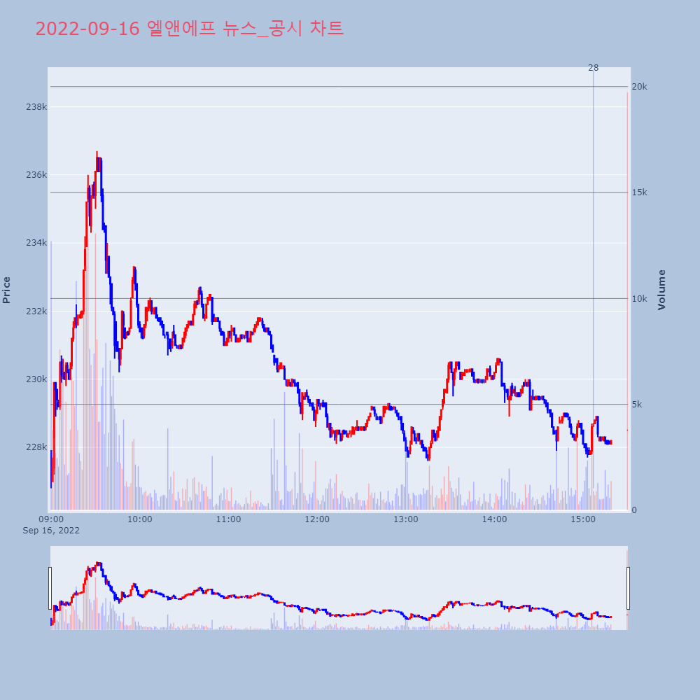 | 1 | 15일, 외국인 코스닥에서 엘앤에프(-2.29%), 에코프로비엠(-3.18%) 등 순매외국인 투자자는 15일 코스닥에서 엘앤에프, 에코프로 | 한경/증권 | 엘앤에프 | 2022-09-15 18:35:18 |