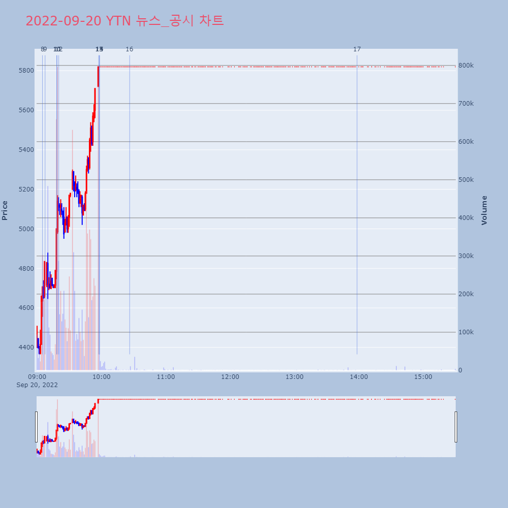 | 4 | 9월 20일 오후장 급등주 PICK5 - YTN, 엘엠에스, 에이에프더블류... 최적의 매매타이밍을 실시간으로 전송하여 투자자들에게 도 | 파이낸셜 | YTN | 2022-09-20 13:58:22 |