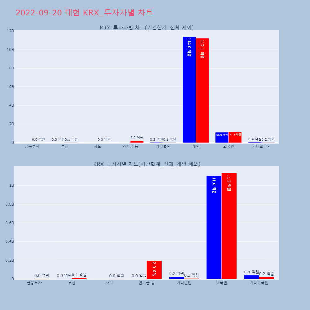 | 투자기관 | 거래량_매도 | 거래량_매수 | 거래량_순매수 | 거래대금_매도 | 거래대금_매수 | 거래대금_순매수 |
