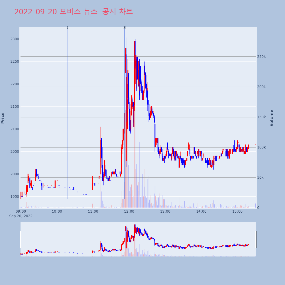 | 2 | 모비스, +11.23% VI 발동모비스가 VI가 발동했다. 전일 대비 11.23% 상승 | 조선경제 | 모비스 | 2022-09-20 11:52:19 |