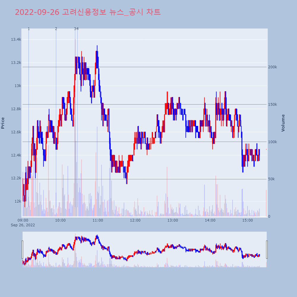 | 4 | 고려신용정보, +12.29% VI 발동고려신용정보가 VI가 발동했다. 전일 대비 12.29% | 조선경제 | 고려신용정보 | 2022-09-26 10:27:28 |