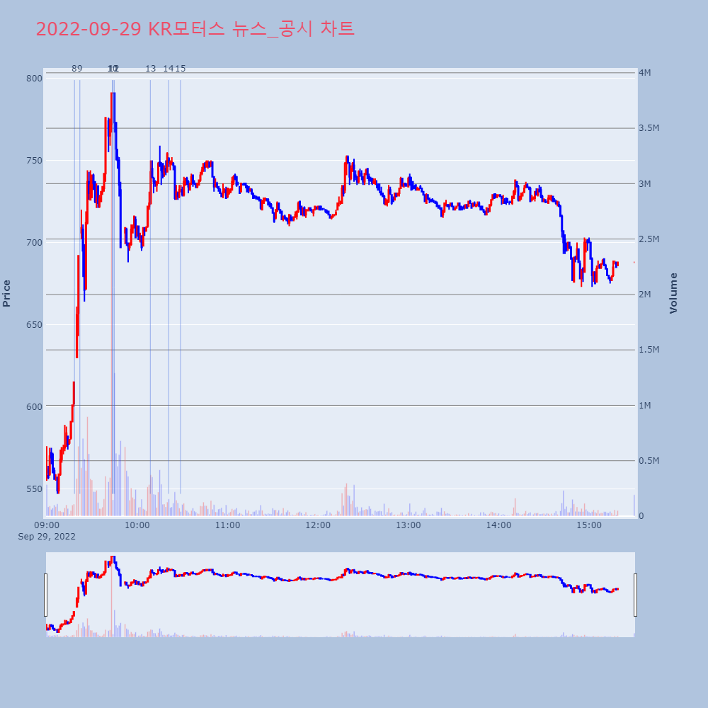 | 3 | [특징주] KR모터스, 서울시 택배 화물차·배달오토바이 전기차 교체… 전기제목 : [특징주] KR모터스, 서울시 택배 화물차·배 | 인포스탁 | KR모터스 | 2022-09-28 10:41:12 |