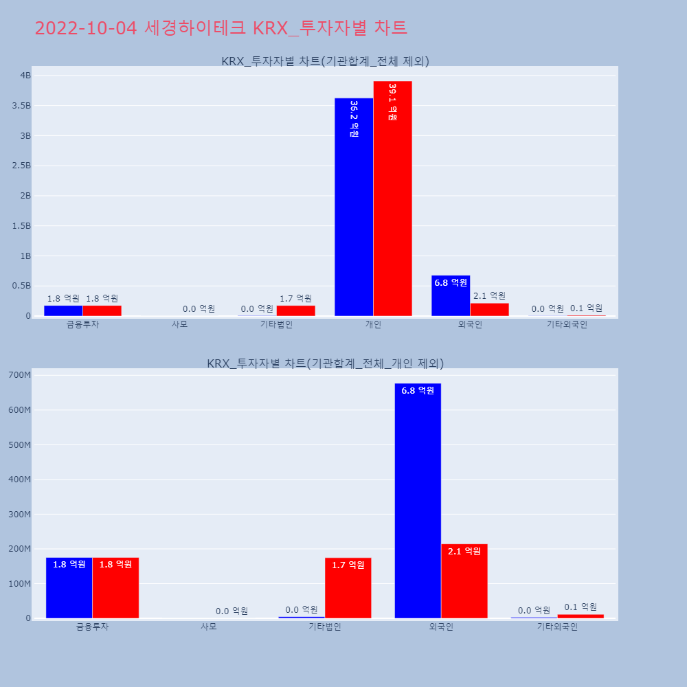 | 투자기관 | 거래량_매도 | 거래량_매수 | 거래량_순매수 | 거래대금_매도 | 거래대금_매수 | 거래대금_순매수 |