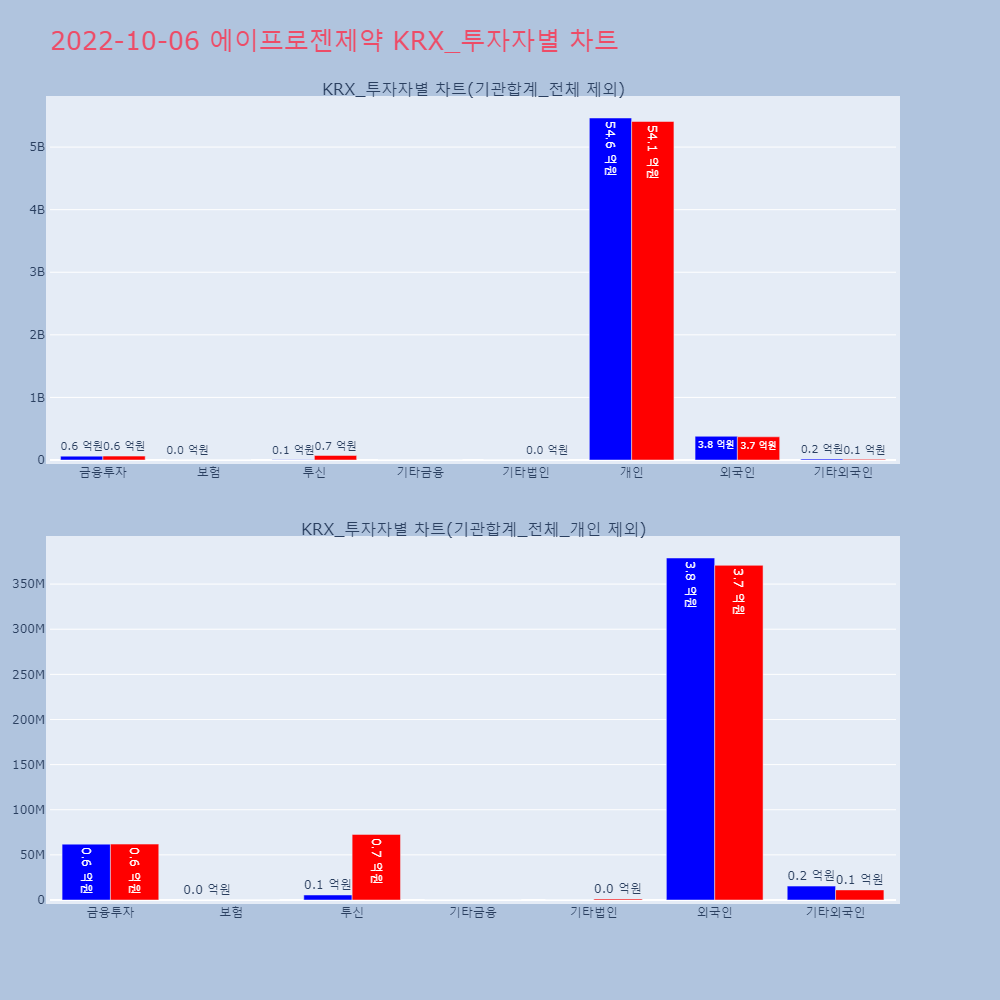 | 투자기관 | 거래량_매도 | 거래량_매수 | 거래량_순매수 | 거래대금_매도 | 거래대금_매수 | 거래대금_순매수 |