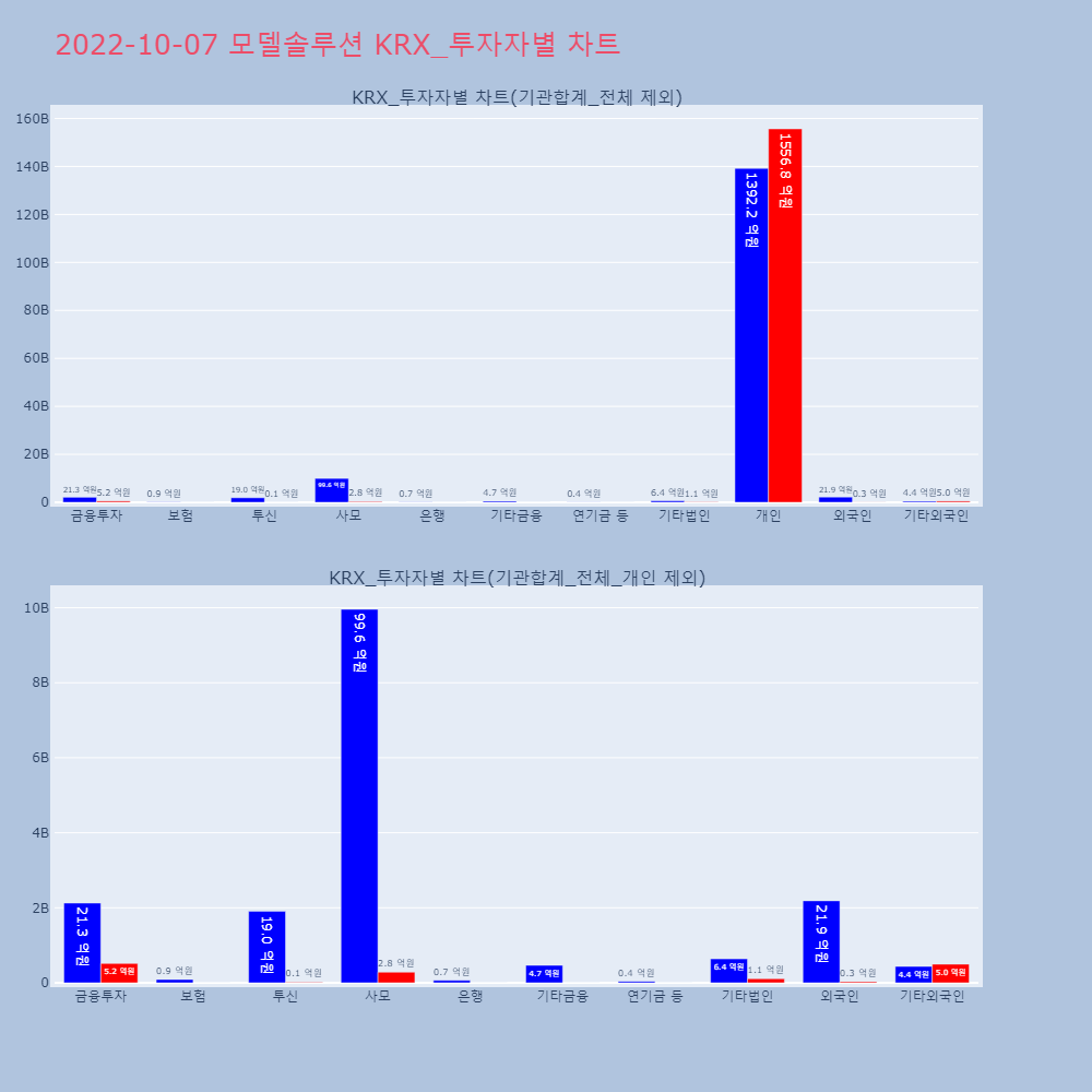 | 투자기관 | 거래량_매도 | 거래량_매수 | 거래량_순매수 | 거래대금_매도 | 거래대금_매수 | 거래대금_순매수 |