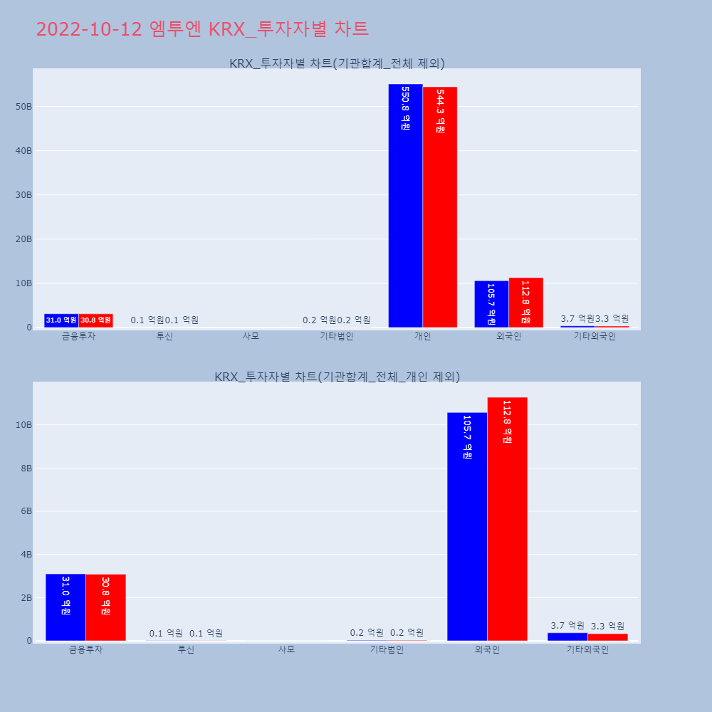 | 투자기관 | 거래량_매도 | 거래량_매수 | 거래량_순매수 | 거래대금_매도 | 거래대금_매수 | 거래대금_순매수 |