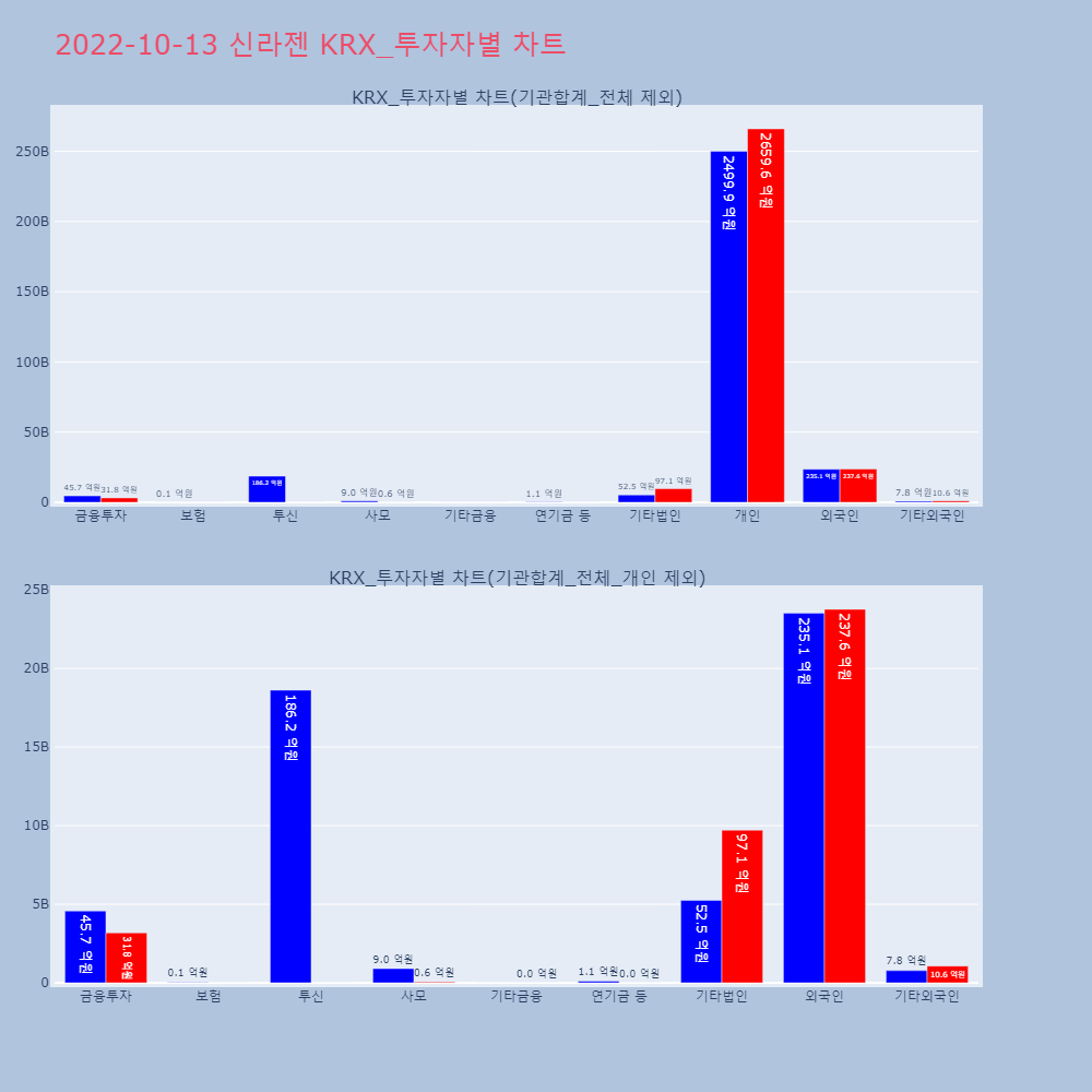 | 투자기관 | 거래량_매도 | 거래량_매수 | 거래량_순매수 | 거래대금_매도 | 거래대금_매수 | 거래대금_순매수 |