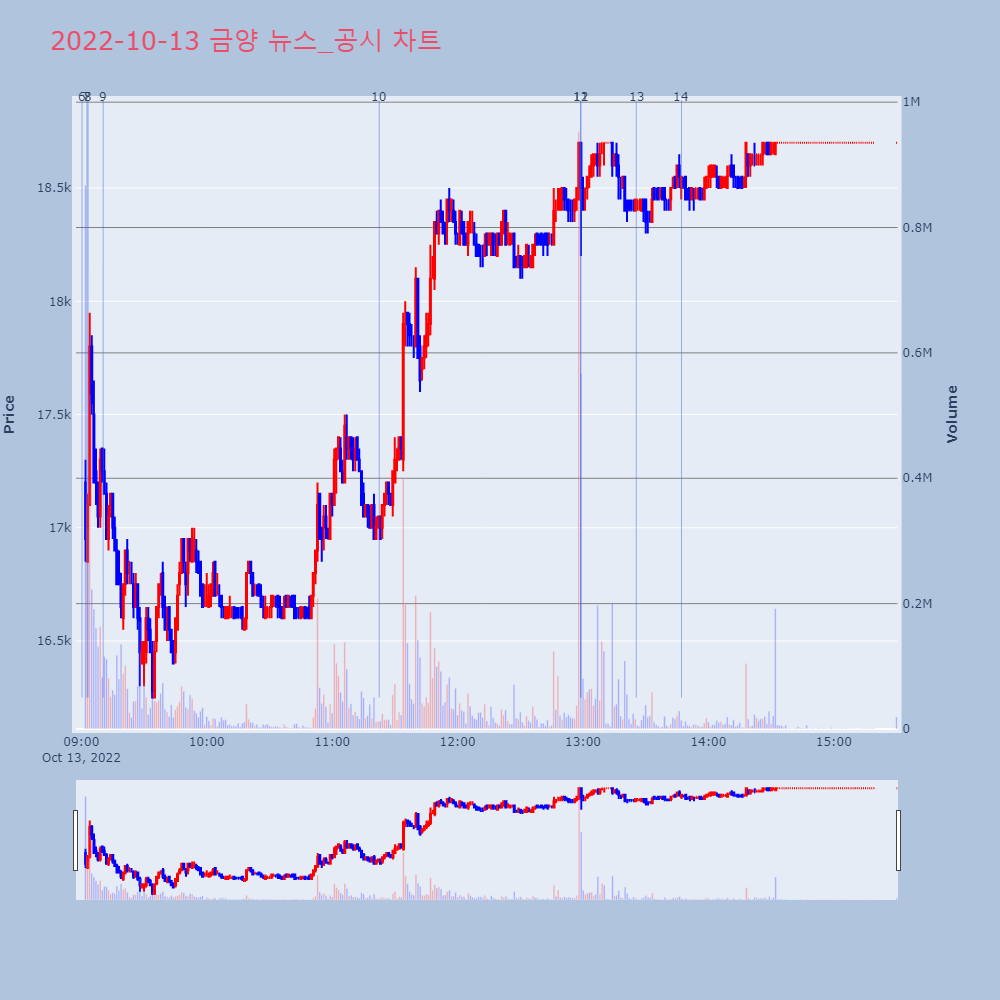 | 7 | 10월 13일 오후장 급등주 PICK5 - 프로이천, 바이오로그디바이스, 금양... 최적의 매매타이밍을 실시간으로 전송하여 투자자들에게 도 | 파이낸셜 | 금양 | 2022-10-13 13:47:07 |