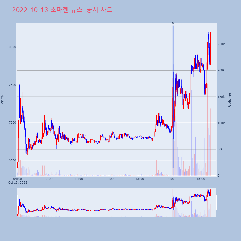 | 1 | 소룩스, +5.46% VI 발동소룩스가 VI가 발동했다. 전일 대비 5.46% 상승한 | 조선경제 | 소룩스 | 2022-10-12 14:13:39 |