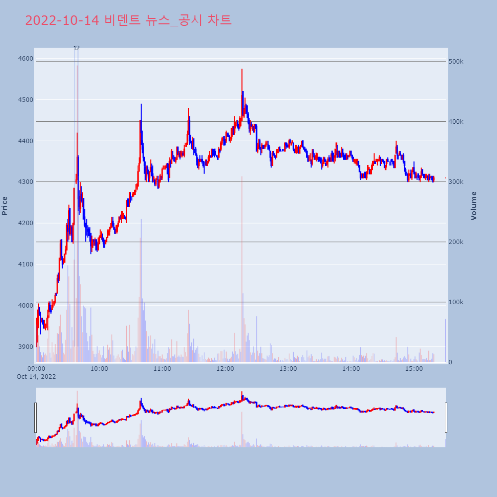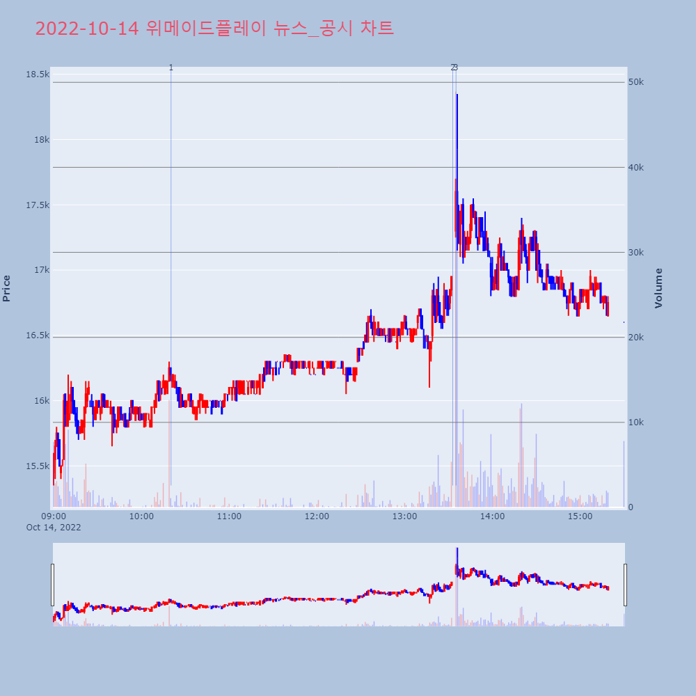 | 11 | 위메이드, +13.27% VI 발동위메이드가 VI가 발동했다. 전일 대비 13.27% 상 | 조선경제 | 위메이드 | 2022-10-14 13:33:30 |