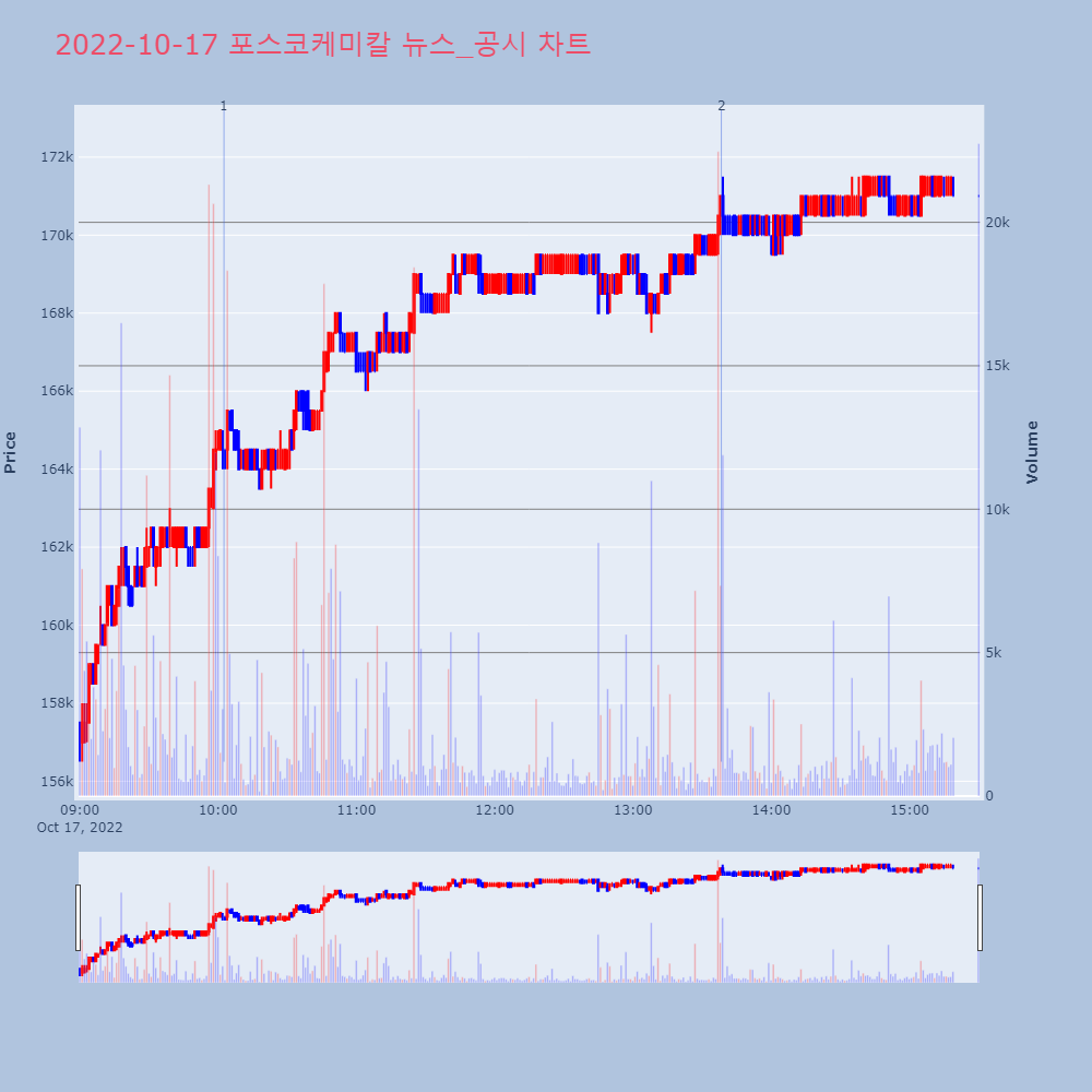 | 2 | [특징주] 포스코케미칼, 리튬값 폭등에 관련주 부각… 6%↑ 제목 : [특징주] 포스코케미칼, 리튬값 폭등에 관련주 | 인포스탁 | 포스코케미칼 | 2022-10-17 13:38:21 |