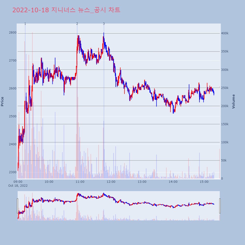 | 1 | 지니너스, +12.80% VI 발동지니너스가 VI가 발동했다. 전일 대비 12.80% 상 | 조선경제 | 지니너스 | 2022-10-18 09:14:08 |
