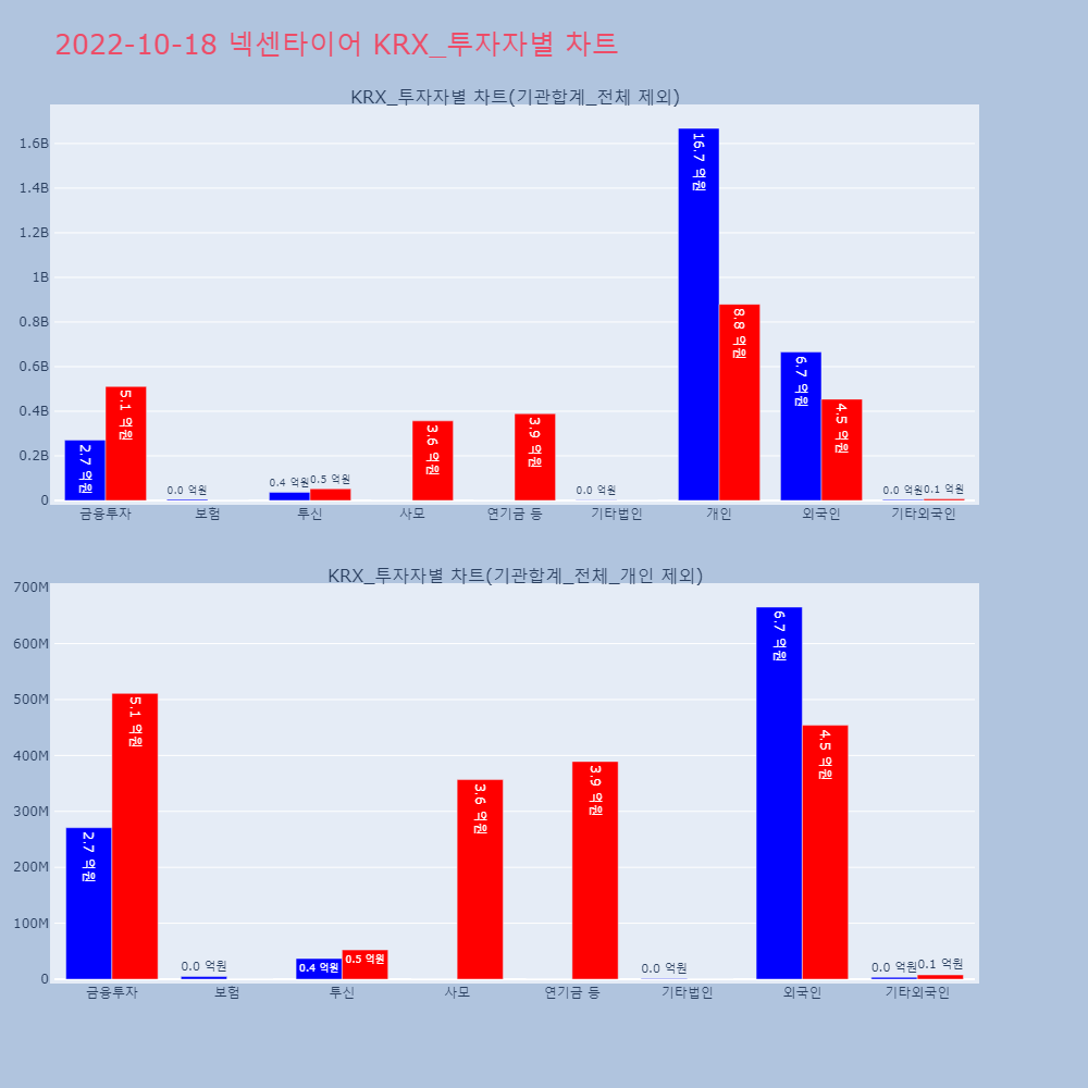 | 개인 | 20,107 | 11,204 | -8,903 | 1,205,076,900 | 670,545,500 | -534,531,400 |
