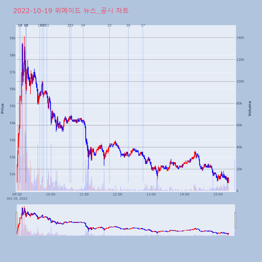 | 14 | 위메이드, +10.54% VI 발동위메이드가 VI가 발동했다. 전일 대비 10.54% 상 | 조선경제 | 위메이드 | 2022-10-19 09:05:58 |