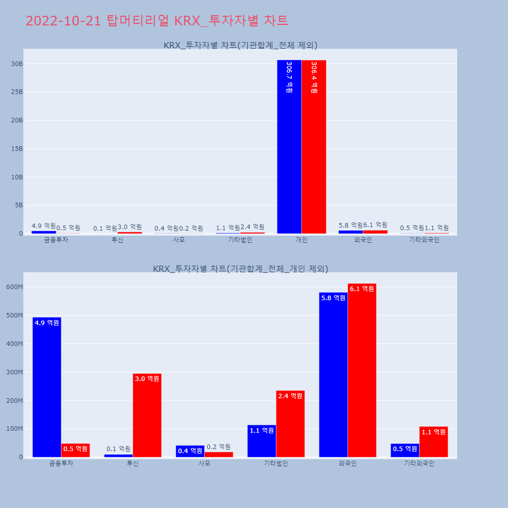 | 투자기관 | 거래량_매도 | 거래량_매수 | 거래량_순매수 | 거래대금_매도 | 거래대금_매수 | 거래대금_순매수 |