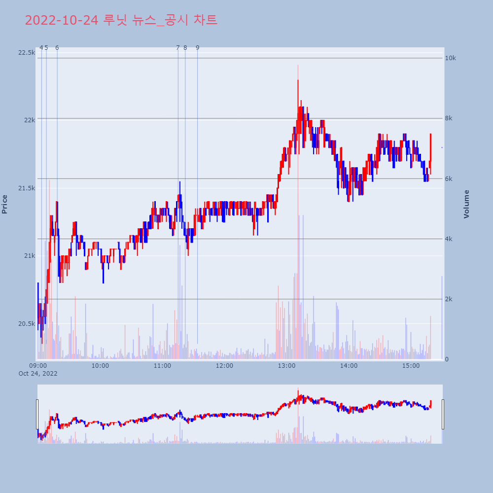 | 9 | [장중수급포착] 루닛, 외국인/기관 동시 순매수… 주가 +5.50% [서울=뉴스핌] 로보뉴스 = 24일 11시 30분 현재 | 뉴스핌 | 루닛 | 2022-10-24 11:33:59 |