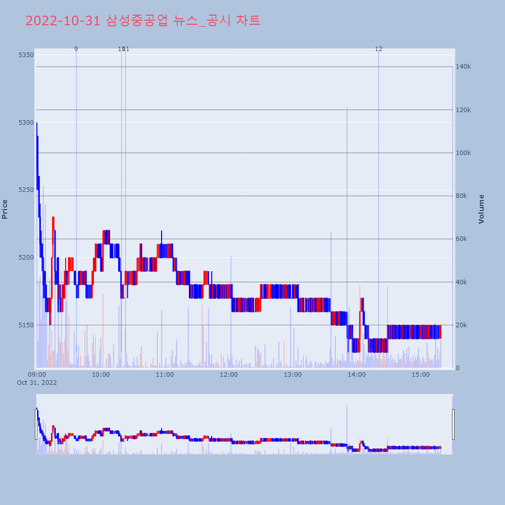 | 13 | “삼성중공업, 일회성 비용 제외하면 시장 기대치 부합” 제목 : “삼성중공업, 일회성 비용 제외하면 시장 기대 | 인포스탁 | 삼성중공업 | 2022-10-31 16:04:13 |