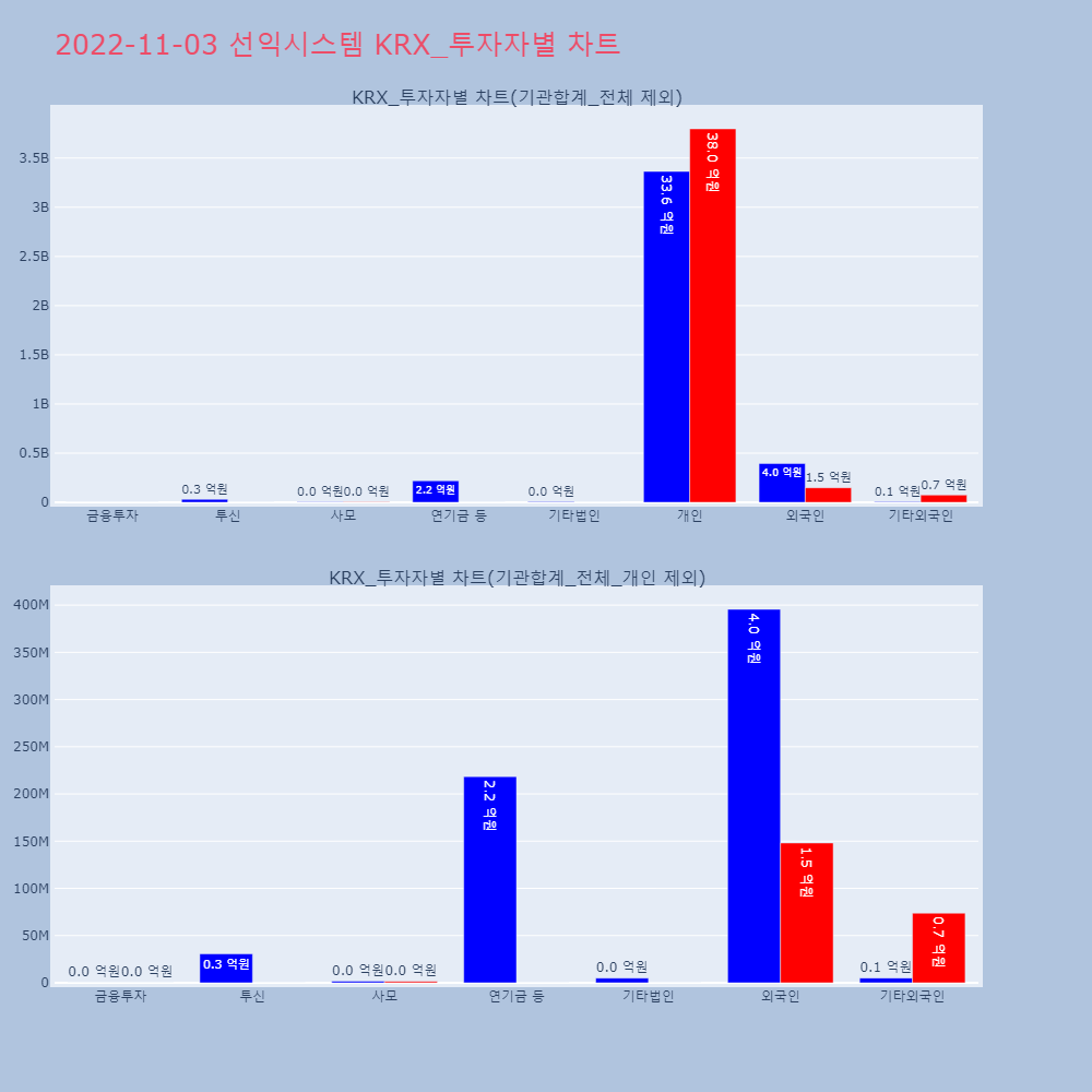 | 투자기관 | 거래량_매도 | 거래량_매수 | 거래량_순매수 | 거래대금_매도 | 거래대금_매수 | 거래대금_순매수 |