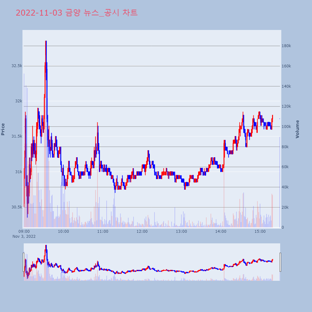 | 4 | 금양, +11.25% VI 발동금양이 VI가 발동했다. 전일 대비 11.25% 상승한 | 조선경제 | 금양 | 2022-11-02 09:36:55 |