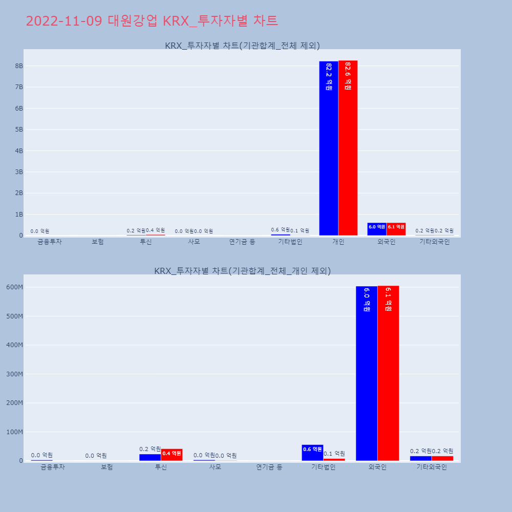 | 투자기관 | 거래량_매도 | 거래량_매수 | 거래량_순매수 | 거래대금_매도 | 거래대금_매수 | 거래대금_순매수 |