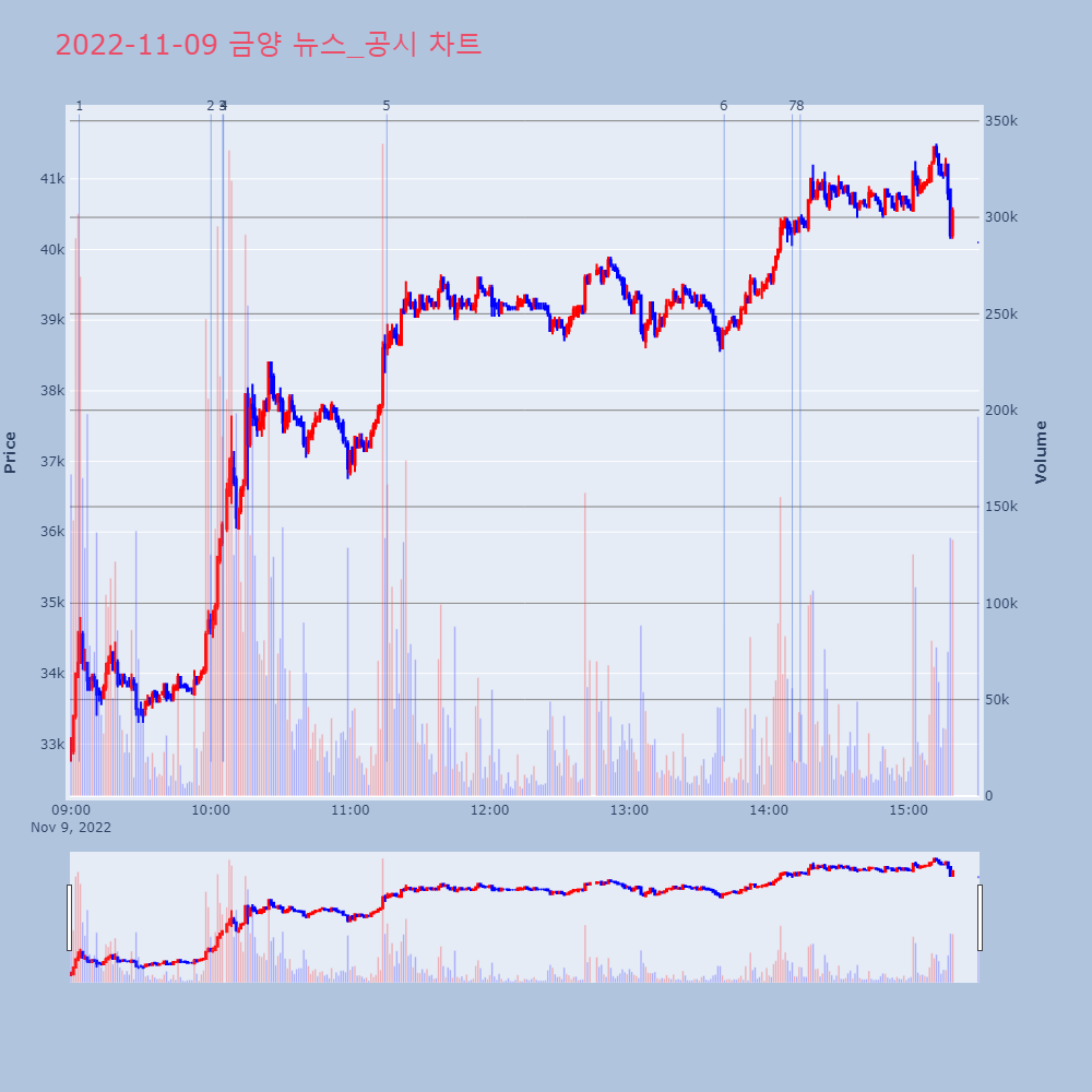 | 4 | 금양, +12.46% VI 발동금양이 VI가 발동했다. 전일 대비 12.46% 상승한 | 조선경제 | 금양 | 2022-11-09 10:05:33 |