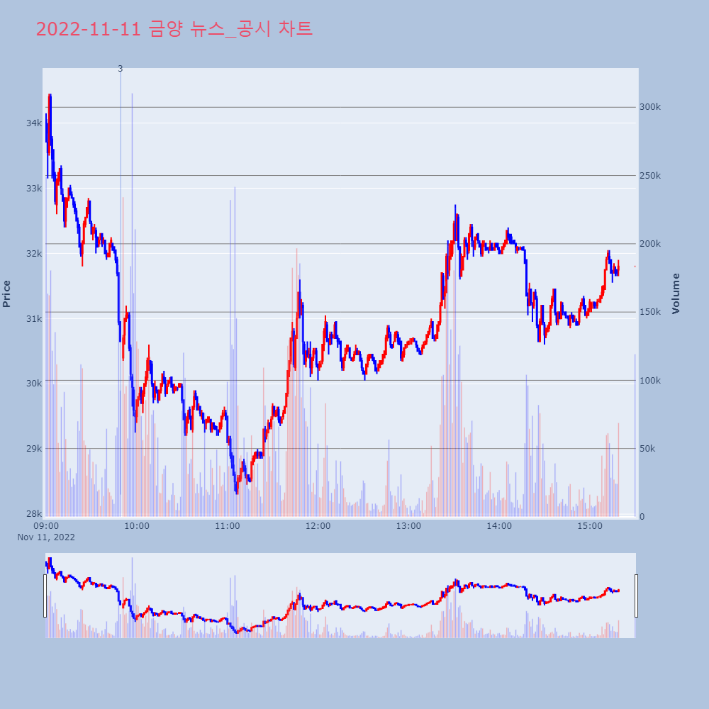 1 | 금양, -18.45% VI 발동금양이 VI가 발동했다. 전일 대비 18.45% 하락한 | 조선경제 | 금양 | 2022-11-10 13:52:49 |
