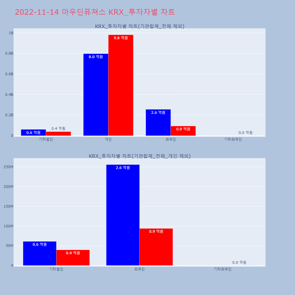 | 투자기관 | 거래량_매도 | 거래량_매수 | 거래량_순매수 | 거래대금_매도 | 거래대금_매수 | 거래대금_순매수 |