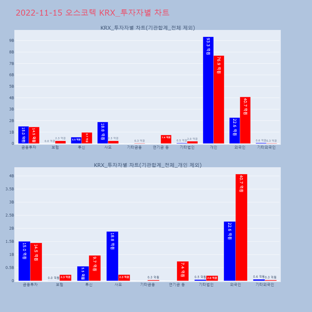 | 투자기관 | 거래량_매도 | 거래량_매수 | 거래량_순매수 | 거래대금_매도 | 거래대금_매수 | 거래대금_순매수 |