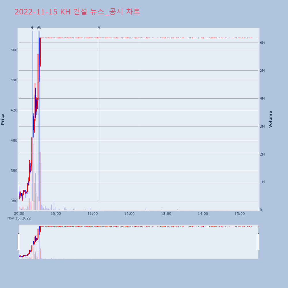 | 5 | KH 건설, +11.67% VI 발동KH 건설이 VI가 발동했다. 전일 대비 11.67% | 조선경제 | KH 건설 | 2022-11-15 09:21:49 |