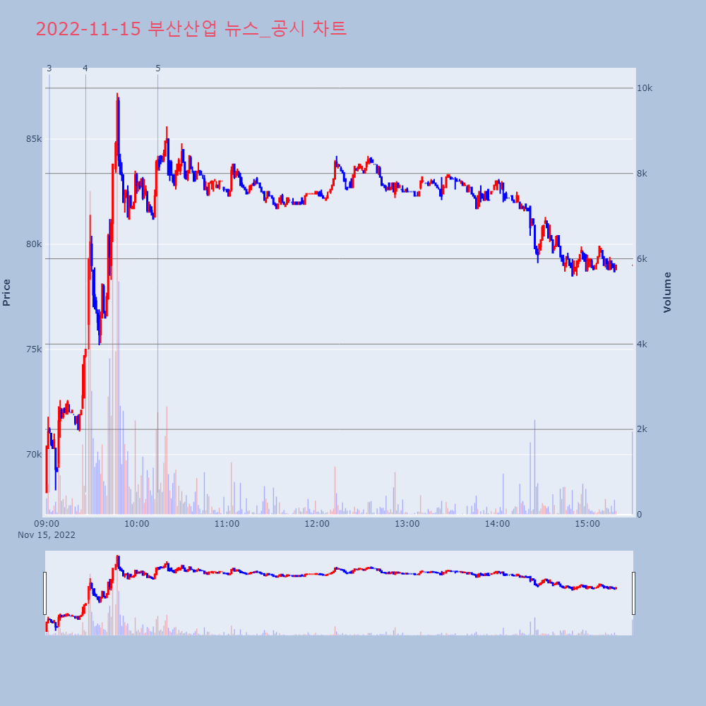 | 1 | [장중수급포착] 부산산업, 외국인 7일 연속 순매수행진... 주가 +1.35% [서울=뉴스핌] 로보뉴스 = 14일 10시 15분 현재 | 뉴스핌 | 부산산업 | 2022-11-14 10:20:46 |