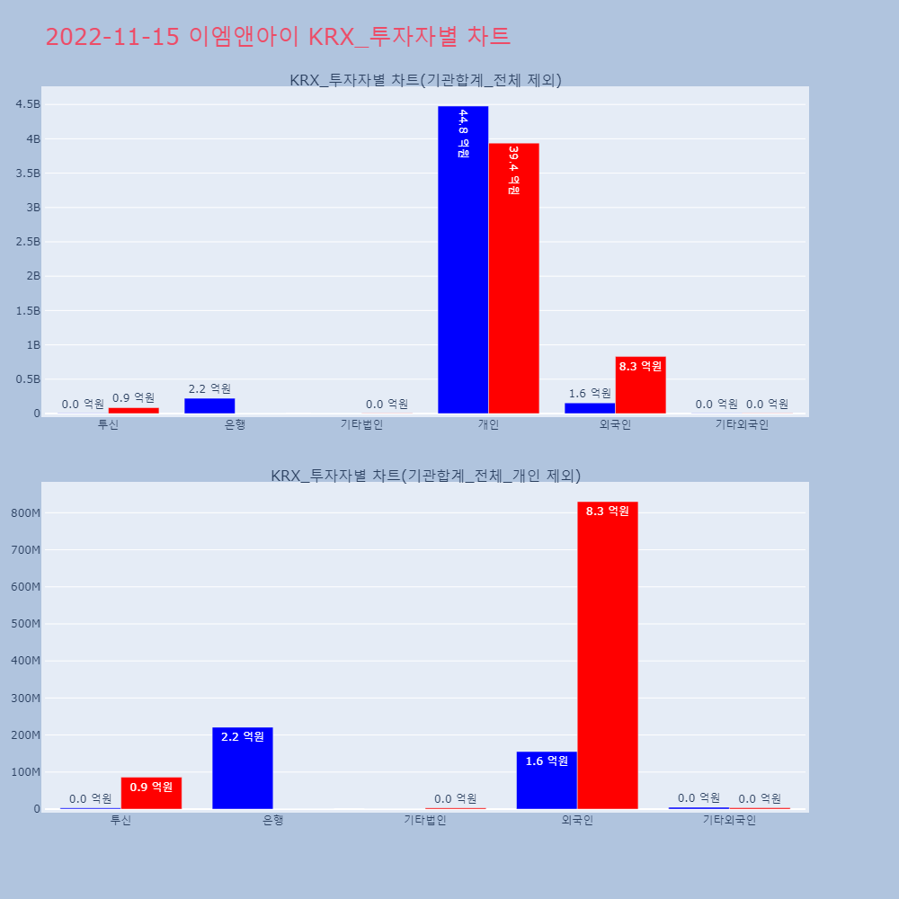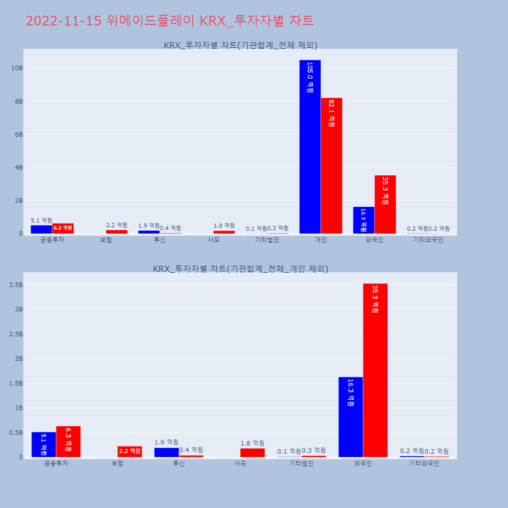 | 투자기관 | 거래량_매도 | 거래량_매수 | 거래량_순매수 | 거래대금_매도 | 거래대금_매수 | 거래대금_순매수 |