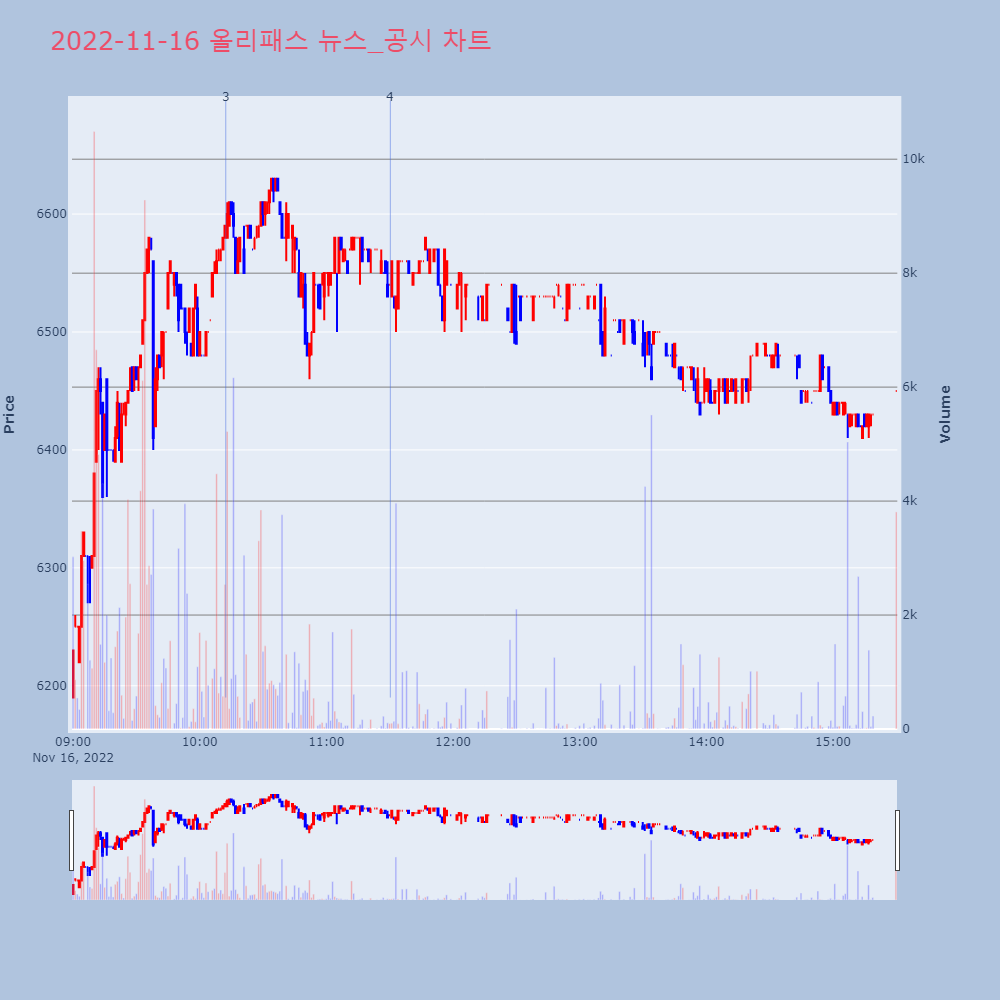 | 4 | [장중수급포착] 올리패스, 외국인 33,107주 대량 순매수... 주가 +5.82% [서울=뉴스핌] 로보뉴스 = 16일 11시 30분 현재 | 뉴스핌 | 올리패스 | 2022-11-16 11:30:19 |