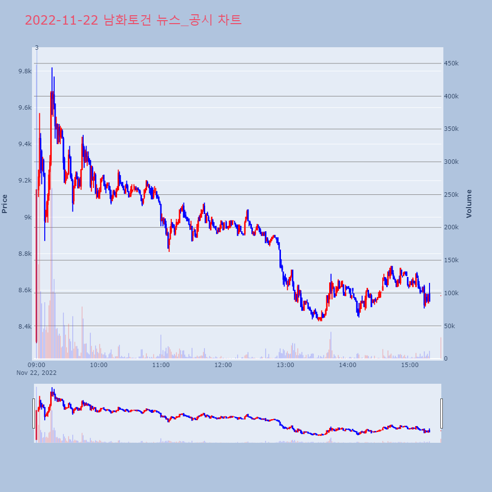 2022. 11. 22 특징주 동방 코오롱글로벌 대창단조 범양건영 서전기전 남화토건 덕신하우징 제룡전기 자연과환경 DL이앤씨 NEOgram/Issue2022. 12. 3. 21:14