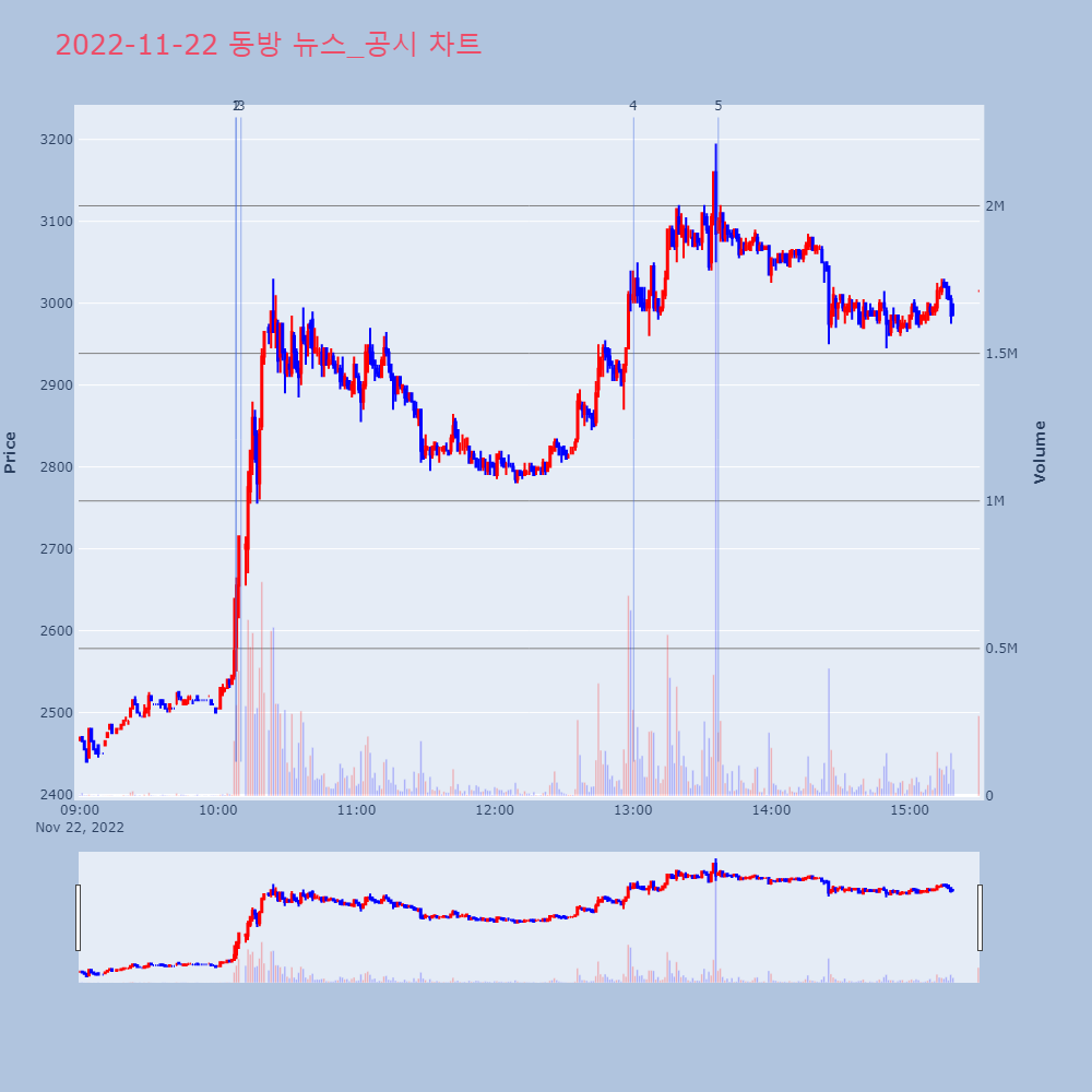 | 3 | 동방, +10.16% VI 발동동방이 VI가 발동했다. 전일 대비 10.16% 상승한 | 조선경제 | 동방 | 2022-11-22 10:09:59 |