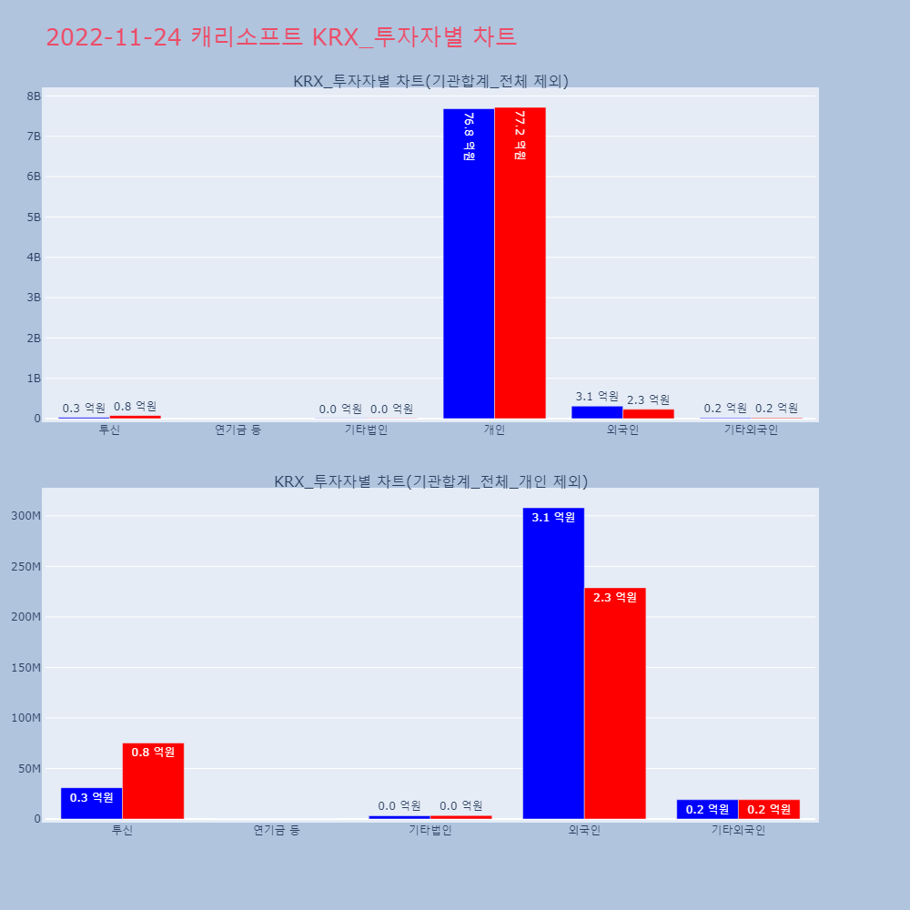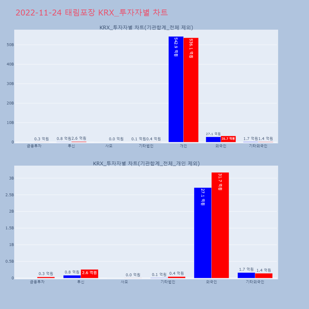 | 투자기관 | 거래량_매도 | 거래량_매수 | 거래량_순매수 | 거래대금_매도 | 거래대금_매수 | 거래대금_순매수 |