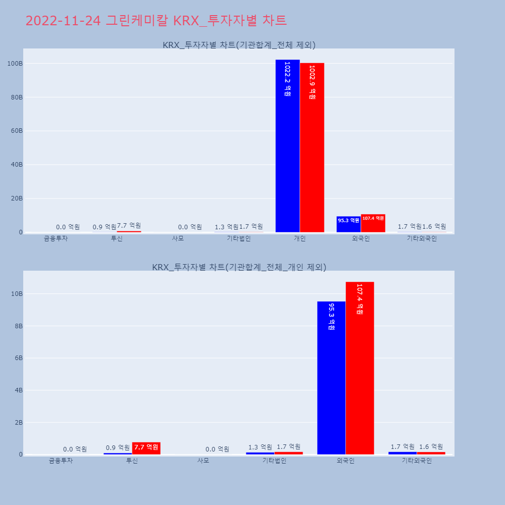 | 투자기관 | 거래량_매도 | 거래량_매수 | 거래량_순매수 | 거래대금_매도 | 거래대금_매수 | 거래대금_순매수 |