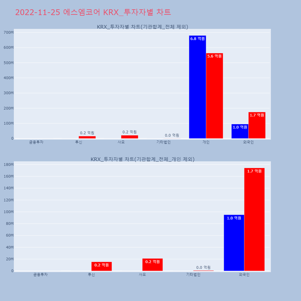 | 외국인 | 155,918 | 111,363 | -44,555 | 6,710,904,800 | 4,815,480,600 | -1,895,424,200 |