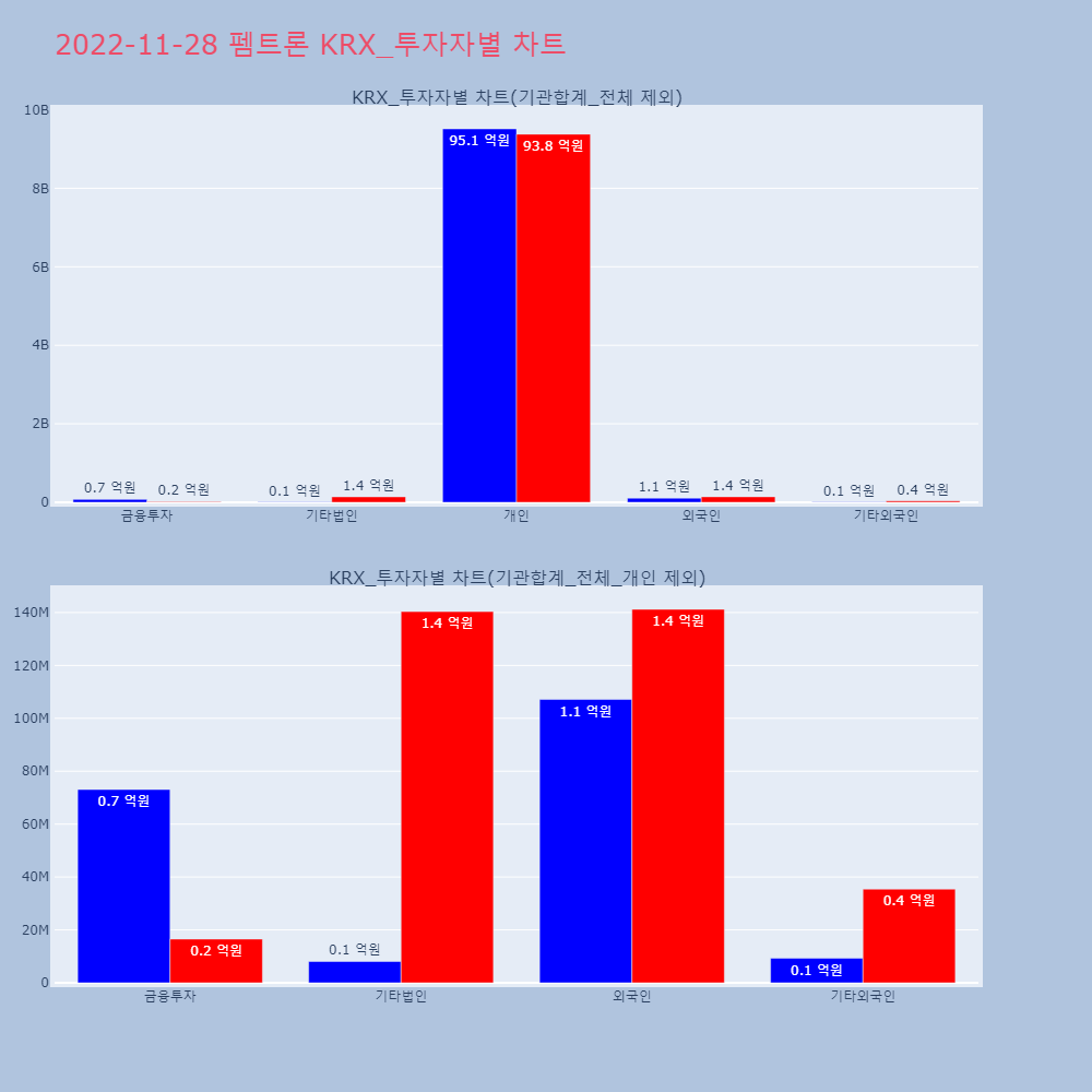 | 투자기관 | 거래량_매도 | 거래량_매수 | 거래량_순매수 | 거래대금_매도 | 거래대금_매수 | 거래대금_순매수 |