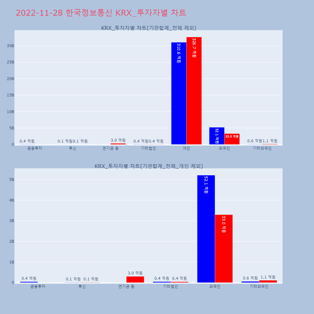 | 외국인 | 57,632 | 44,005 | -13,627 | 4,611,381,300 | 3,521,575,000 | -1,089,806,300 |